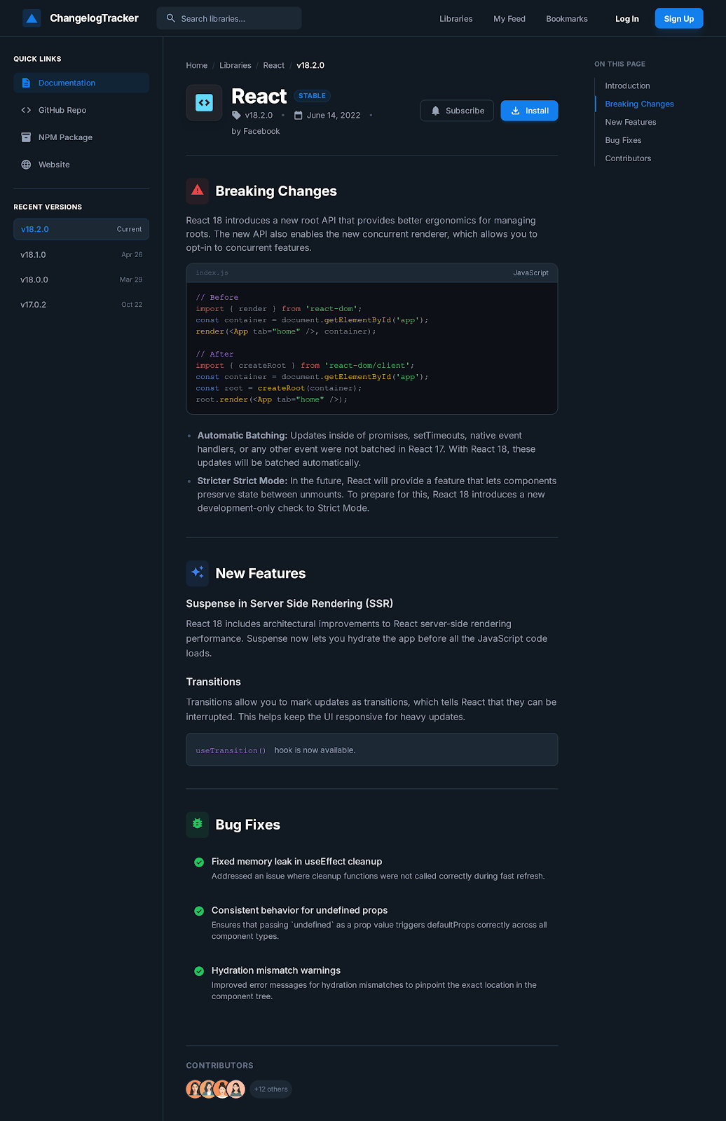 Here's what this looks like in practice. Say you've built a simple app that parses changelogs and shows you what's new with a library — functional, but visually plain.